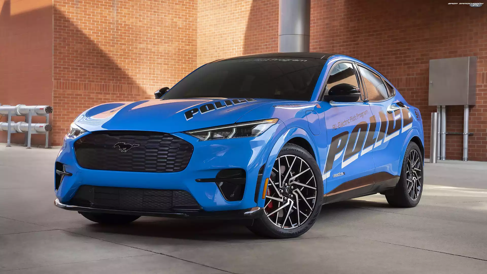 Samochód: Policyjny, Niebieski, Ford Mustang Mach-E GT