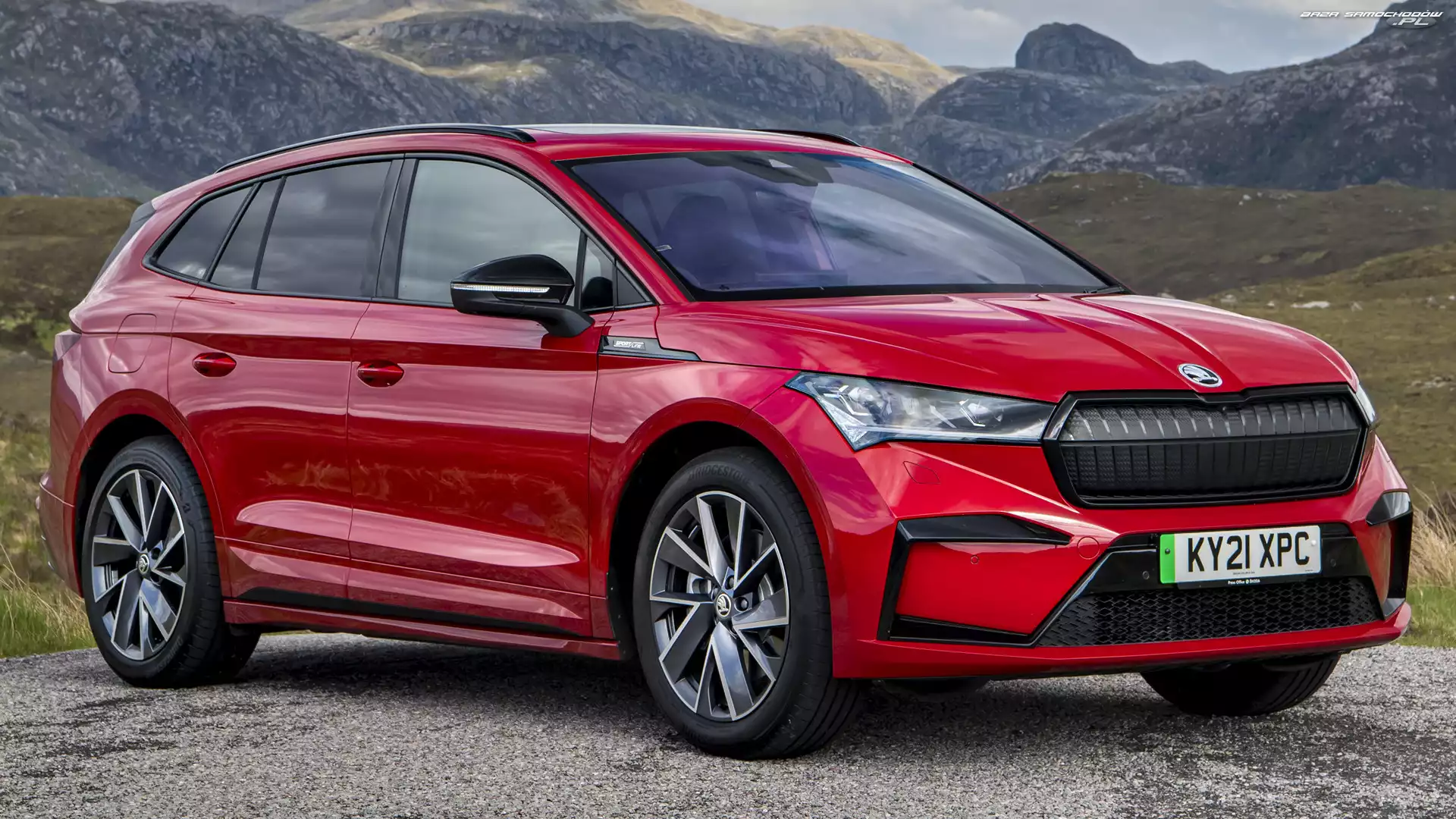 Czerwona, Skoda Enyaq iV Sportline- Zdjęcia samochodów