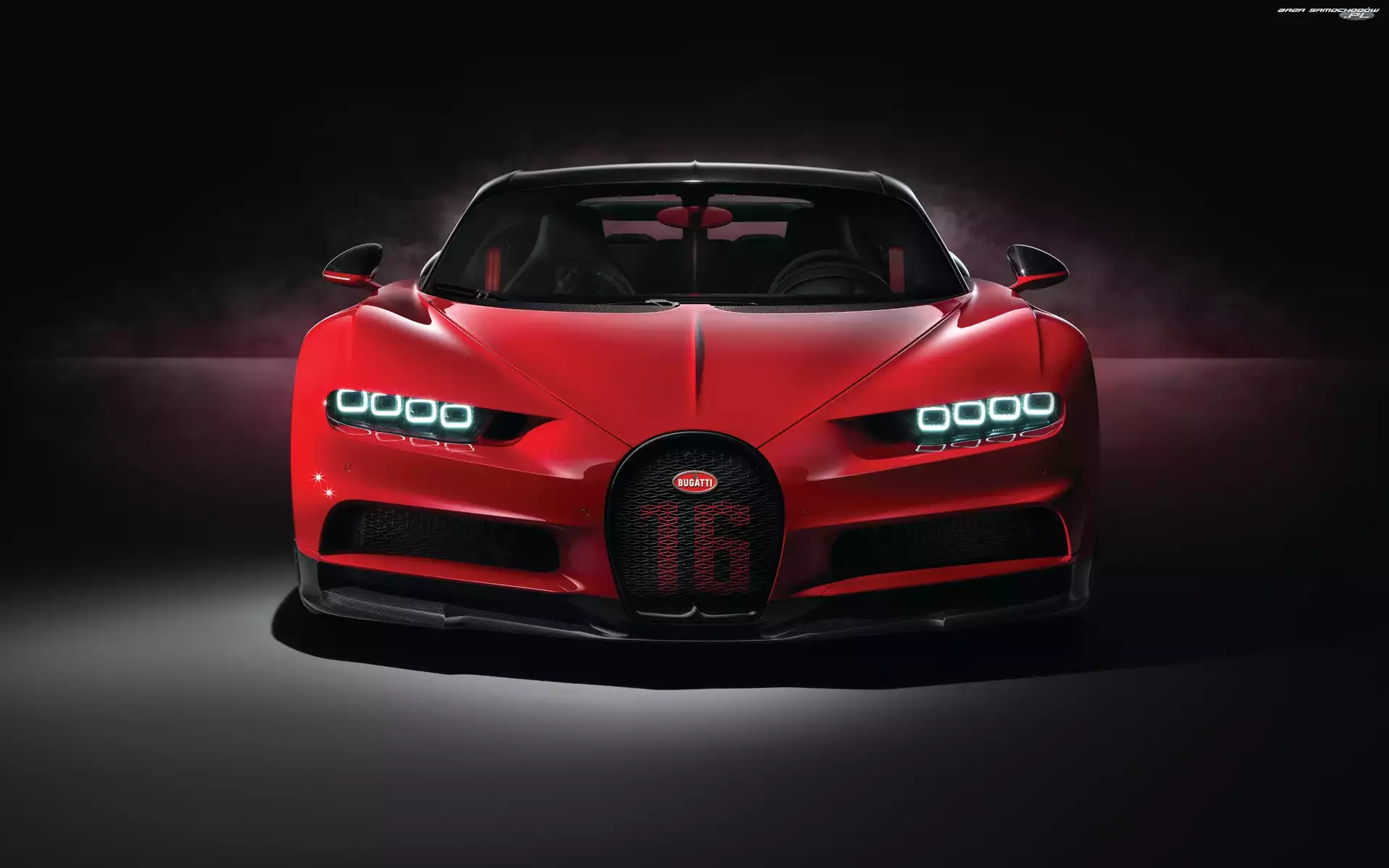 Czerwony, Bugatti Chiron Sport- Zdjęcia samochodów