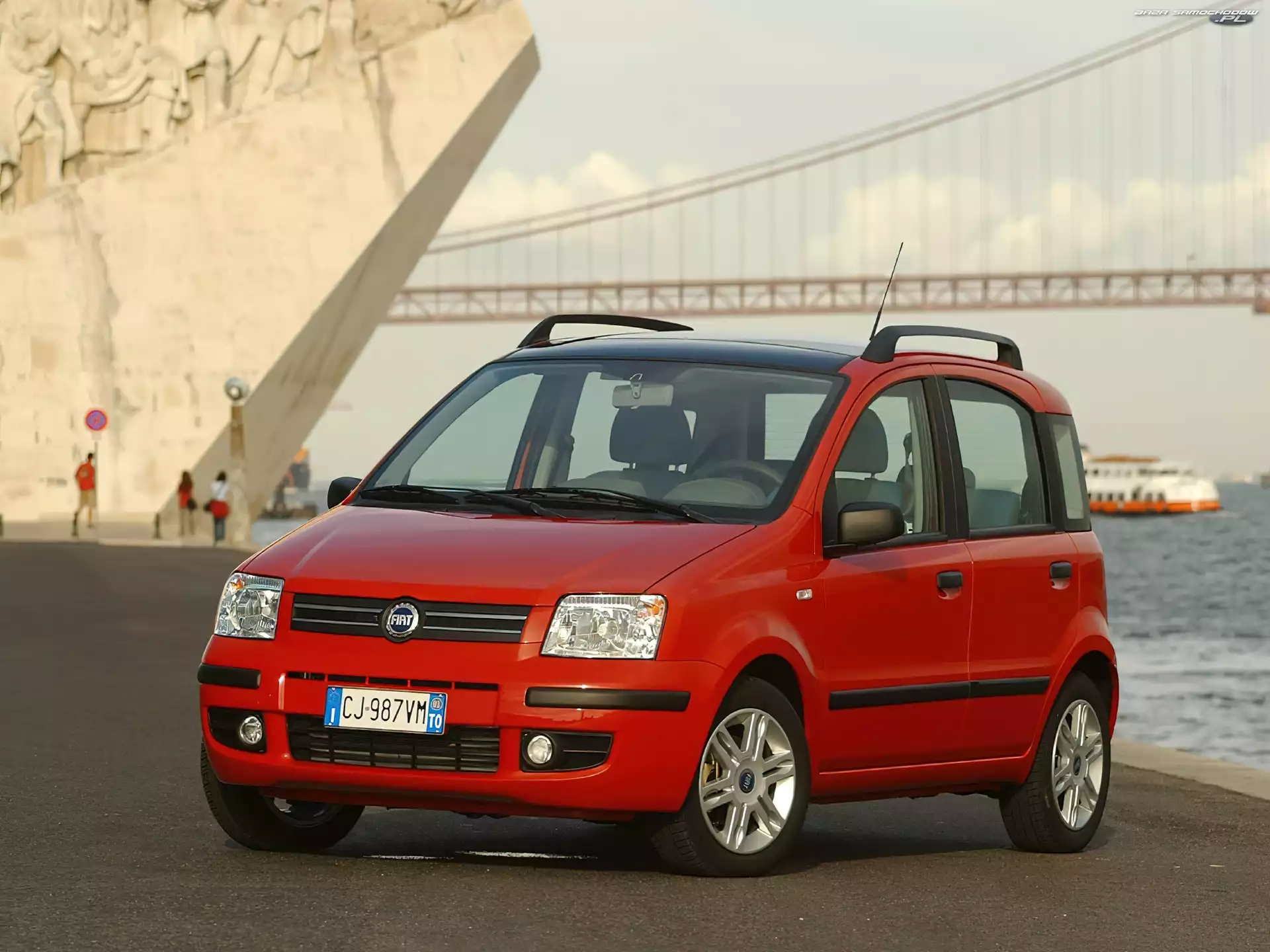 czerwony, Fiat, Most, Panda- Zdjęcia samochodów