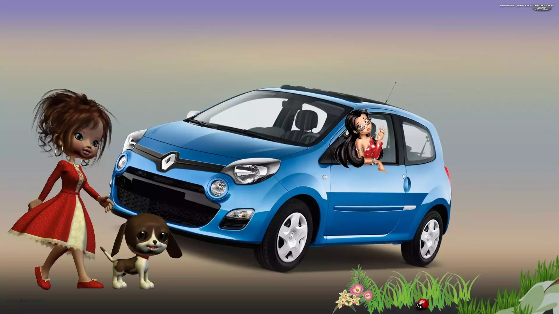 Renault, Pies, Samochód, Grafika, Laleczki- Zdjęcia samochodów