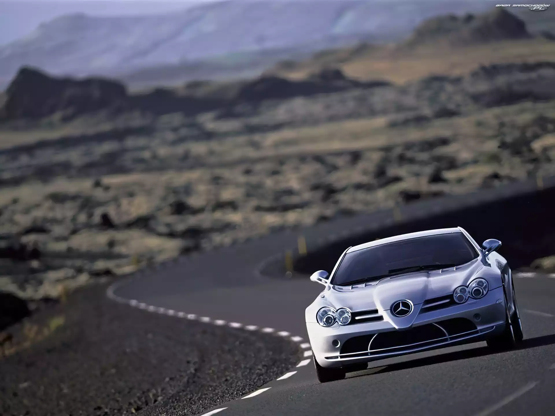 Mclaren, Mercedes Benz SLR Mercedes SLR, Droga, Góry Mercedes SLR Samochód, Mercedes SLR Mercedes SLR, Tył Mercedes SLR, Wirtualny, Tuning Karbon, Mercedes SLR, Brabus Srebrny SLR Przód, Mercedes SLR Mercedes SLR Dom, Drzewa, Banz, Mercedes, Zachód Słońca Drzwi, Mercedes SLR, Unoszone Mercedes SLR Mercedes SLR, Drzwi, Biały, Podniesione